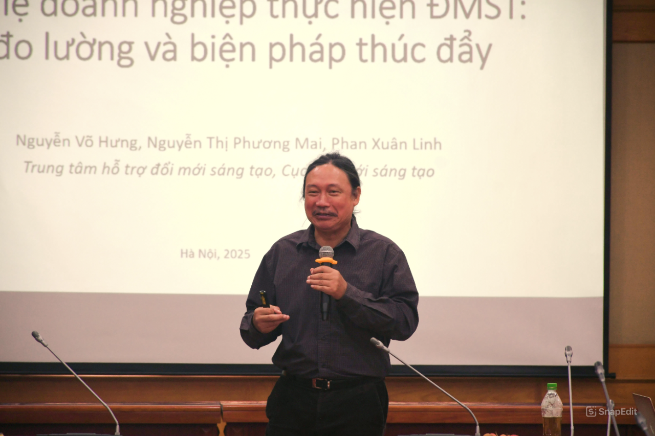 Phát biểu khai mạc Hội thảo, Phó Cục trưởng Cục Đổi mới sáng tạo Chu Thúc Đạt cho biết, Hội thảo là cơ hội để cơ quan quản lý chia sẻ thông tin, đồng thời được lắng nghe ý kiến của đại diện các hiệp hội, doanh nghiệp, viện nghiên cứu, trường đại học và các chuyên gia về chỉ số ĐMST và tiêu chí đo lường, đánh giá hiệu quả ĐMST của doanh nghiệp. Trên cơ sở đó, có các giải pháp phù hợp và kịp thời để đưa chính sách vào cuộc sống, từng bước nâng cao năng lực công nghệ và ĐMST của các ngành, lĩnh vực nói riêng và của quốc gia nói chung, hướng đến mục tiêu trên 40% doanh nghiệp có hoạt động đổi mới sáng tạo vào năm 2030.