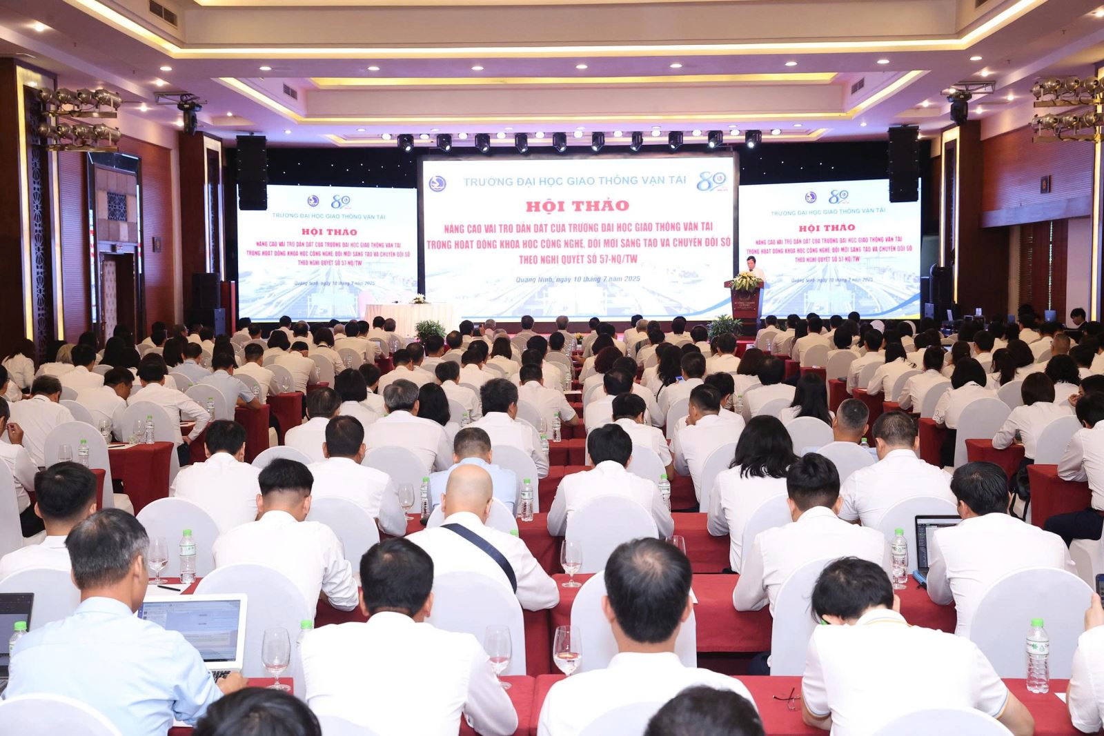 PGS.TS Nguyễn Văn Hùng - Hiệu trưởng Trường Đại học Giao thông Vận tải cho biết, trải qua 80 năm xây dựng và phát triển, Trường Đại học Giao thông Vận tải đã tiếp tục khẳng định vị thế vững chắc của mình khi gặt hái được nhiều thành quả quan trọng. Nhà trường không chỉ giữ vững thứ hạng trong nhóm 500 đại học hàng đầu châu Á theo bảng xếp hạng QS, mà còn là cơ sở giáo dục duy nhất được xác định là đại học trọng điểm quốc gia về lĩnh vực giao thông vận tải theo Quyết định 452/QĐ-TTg của Thủ tướng Chính phủ ngày 27/02/2025. Ngoài ra, Trường còn nằm trong danh sách 18 trường đại học được ưu tiên phát triển phòng thí nghiệm bán dẫn theo Quyết định số 1017/QĐ-TTg ngày 21/09/2024 của Thủ tướng Chính phủ. Bên cạnh đó, Nhà trường được Bộ Giáo dục và Đào tạo tiếp tục được giao trọng trách đào tạo và nghiên cứu khoa học trong lĩnh vực công nghệ giao thông và hạ tầng thông minh.