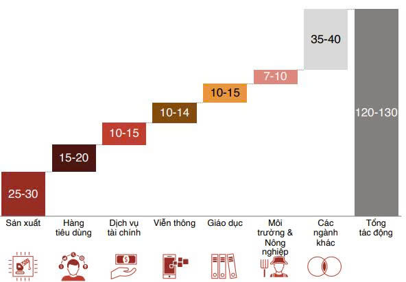 Sự tác động của AI đối với nền kinh tế Việt Nam được ước tính dựa trên đóng góp vào tăng trưởng doanh thu và tiết kiệm chi phí thông qua việc nâng cao năng suất lao động (hình 2). Ước tính tác động kinh tế của AI đối với nền kinh tế Việt Nam, thông qua việc gia tăng doanh thu và tiết kiệm chi phí từ nâng cao năng suất lao động. Dựa trên phân tích của Công ty Boston Consulting Group (BCG), đến năm 2040, AI có thể đóng góp hơn 120 tỷ USD cho GDP của Việt Nam. Đây là tín hiệu rõ ràng cho thấy, nếu tích hợp hiệu quả AI vào giáo dục khởi nghiệp, Việt Nam có thể đẩy mạnh thương mại hóa ý tưởng đổi mới, đồng thời nâng cao năng lực cạnh tranh quốc gia trong bối cảnh kinh tế số toàn cầu hóa. Đây là minh chứng thuyết phục cho thấy, để giáo dục khởi nghiệp thực sự trở thành lực đẩy phát triển kinh tế tri thức, Việt Nam cần đẩy mạnh tích hợp các công nghệ mới như AI vào chương trình đào tạo và định vị lại đầu tư chiến lược cho lĩnh vực giáo dục khởi nghiệp đổi mới sáng tạo.